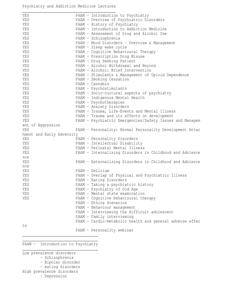 Paam Notes Pdf Bipolar Disorder Major Depressive Disorder